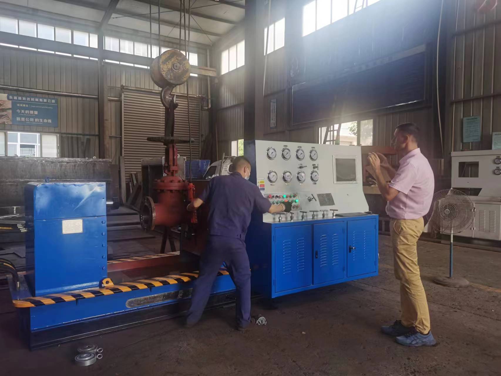 本機(jī)集機(jī)電、液壓、試壓、液體介質(zhì)貯存循環(huán)使用于一體,具有功能完善、性能穩(wěn)定、自動(dòng)化程度高等特點(diǎn)。廣泛用于公稱通徑DNl 5-1000mm的直通式法蘭及螺紋連接各類高、中、低壓閥門的強(qiáng)度、密封和泄漏量等各項(xiàng)性能測(cè)試。測(cè)試介質(zhì):水、氣、油。最高密封試驗(yàn)壓力 32.0MPa,強(qiáng)度48 0MPa。